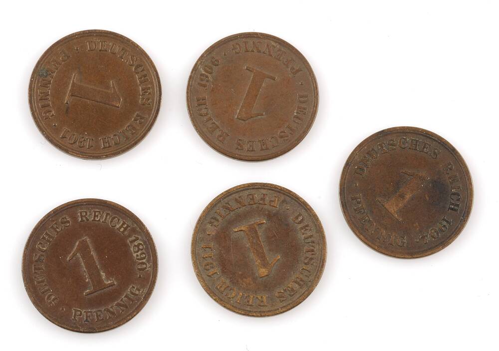 vijf munten: 1 pfennig
