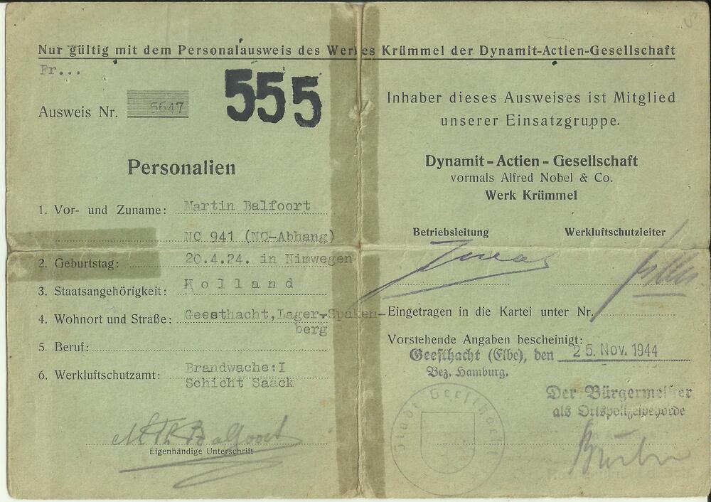 Ausweis van Dhr Balfoort te Nijmegen