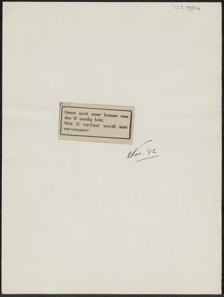 advertentie: Neem nooit meer bonnen mee dan u nodig ...