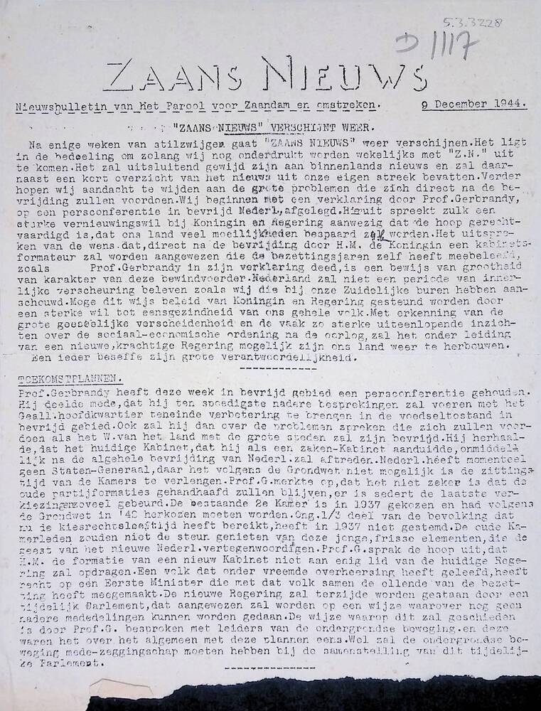 Zaans Nieuws ( Parool bulletin voor Zaandam en Omstr...