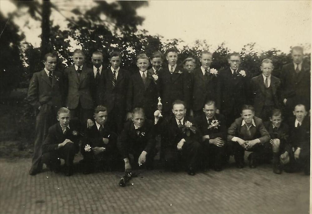 Nederlands Indië; groep jonge mannen, kostuum