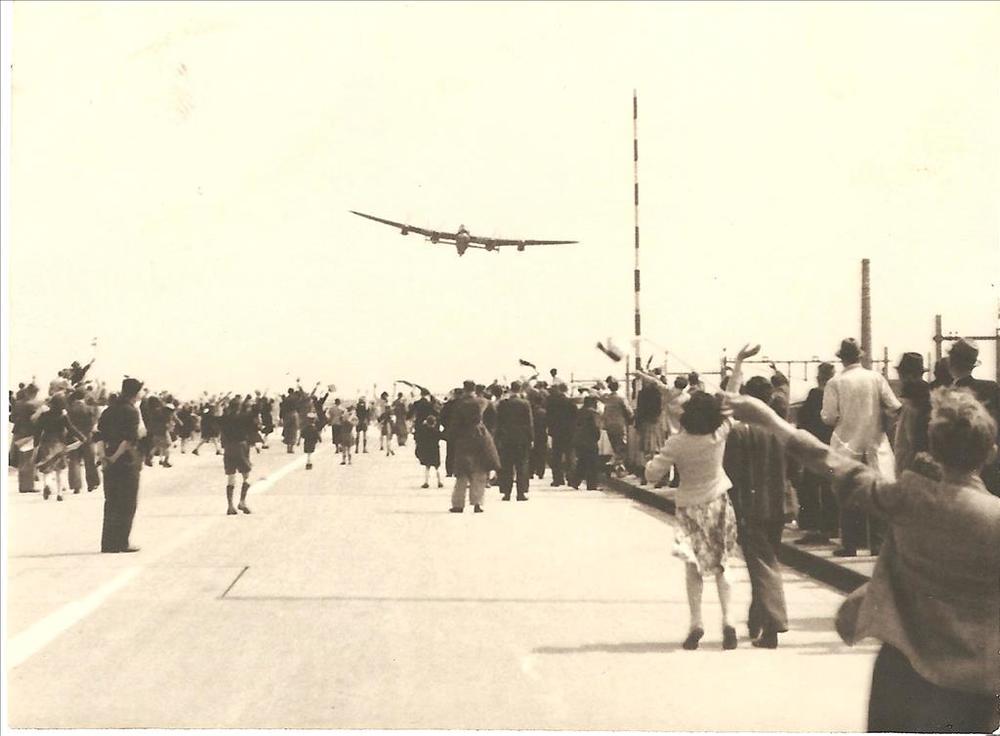 "Manna", Lancaster vliegt laag over zwaaiende burger...