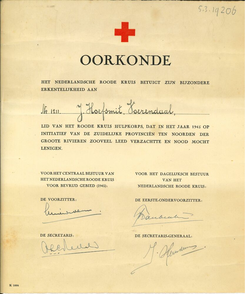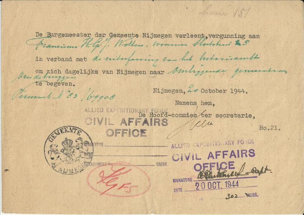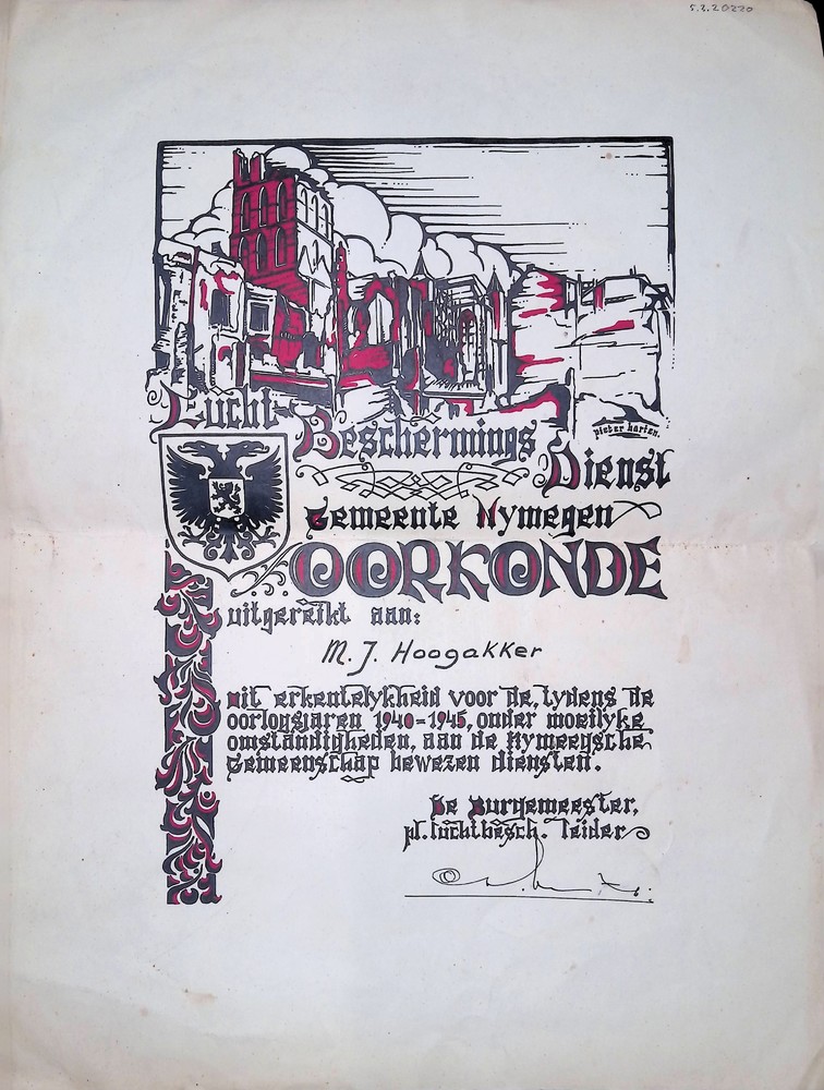 Oorkonde van de luchtbeschermingsdienst Nijmegen op ...