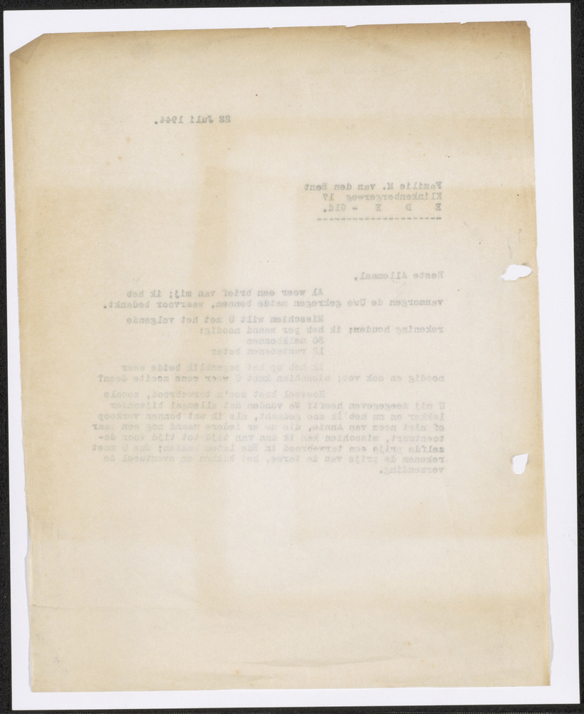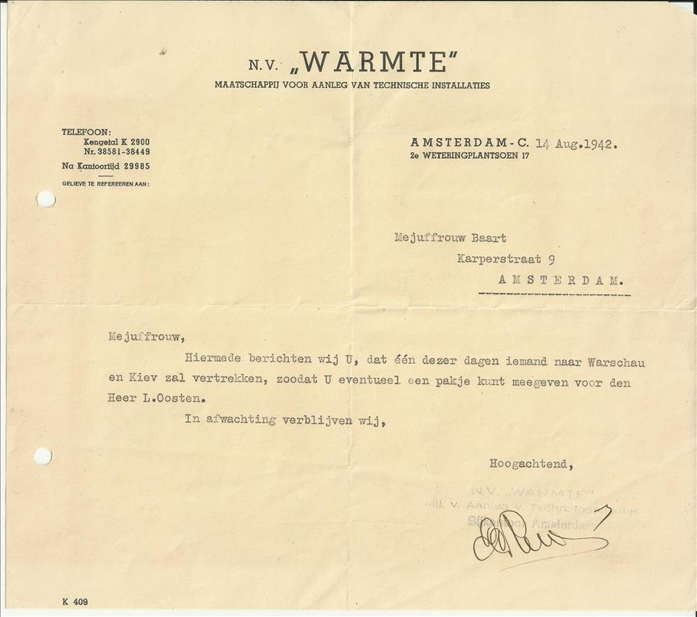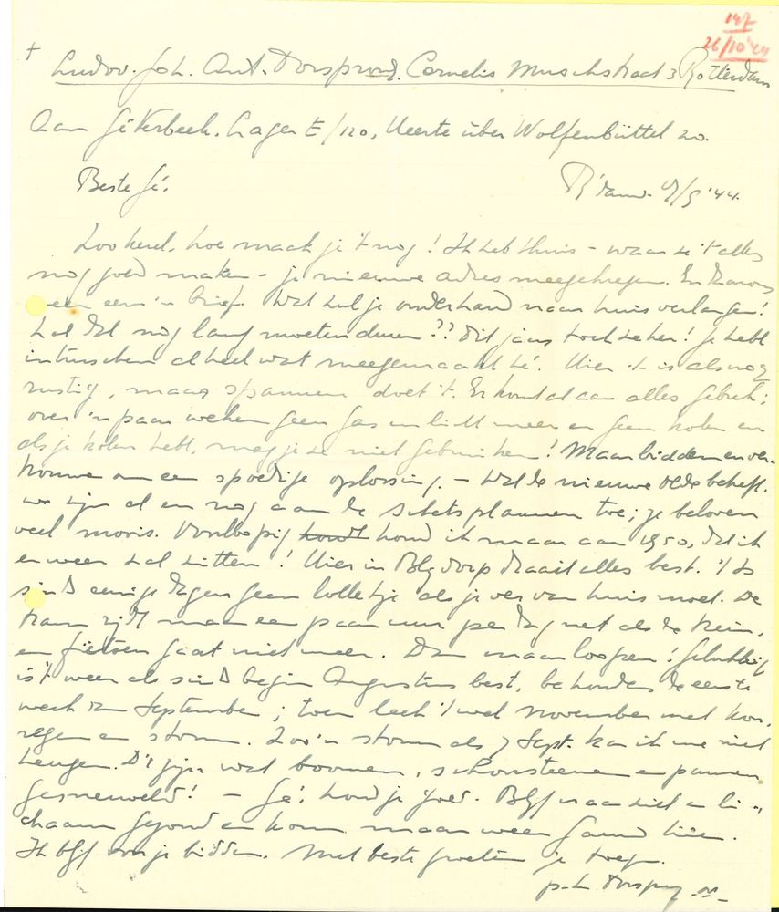 Brief uit Rotterdam aan Gé Verbeek in Watenstedt, 7 ...
