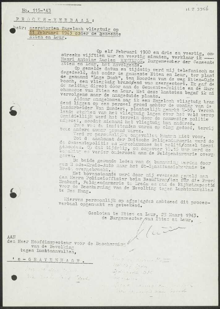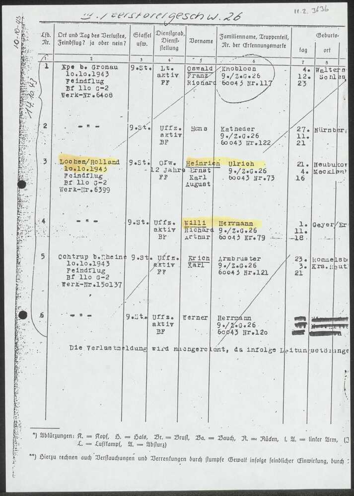 Namentliche Verlustmeldung 10 oktober 1943.