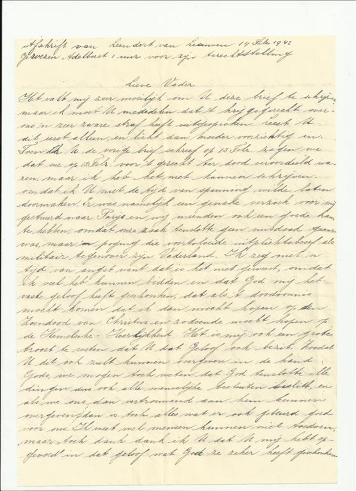 Afscheidsbrief ter dood veroordeelde Leendert van Le...