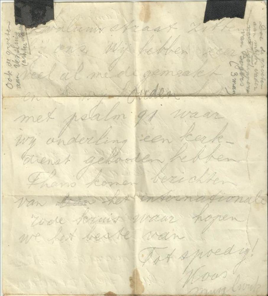 Brief aan mevr. de Jong te Rotterdam van haar man di...