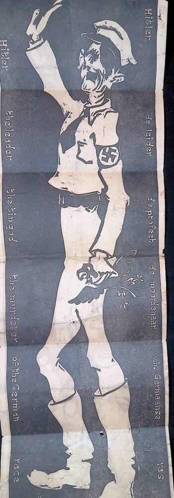 Folder met cartoon: "Hitler, de leider, de profeet, ...