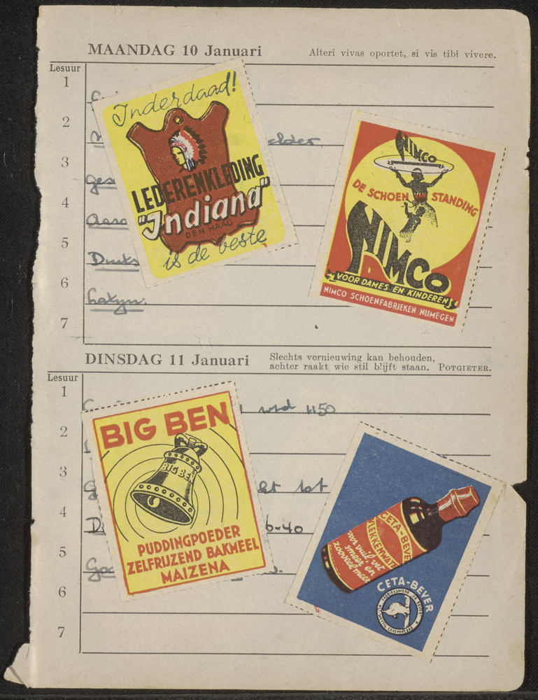 Bladzijde uit schoolagenda met sluitzegels