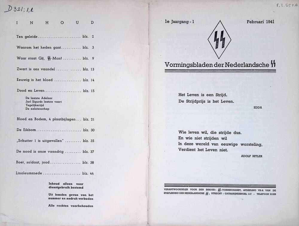 Vormingsbladen der Nederlandsche SS Jaargang 1, no 1...