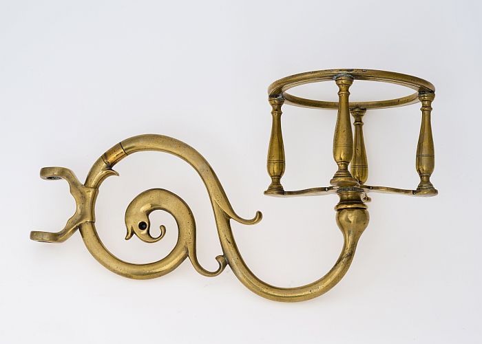 Zandloperhouder, bestaande uit drager op gebogen arm...