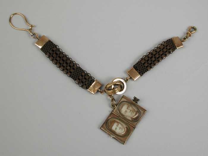 Horlogeketting, armband van gevlochten mensenhaar, m...