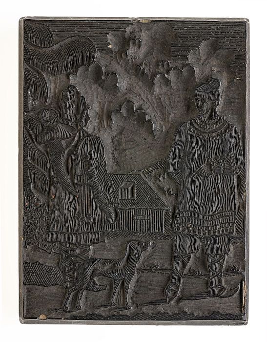 Houten cliché met man en vrouw uit Lapland