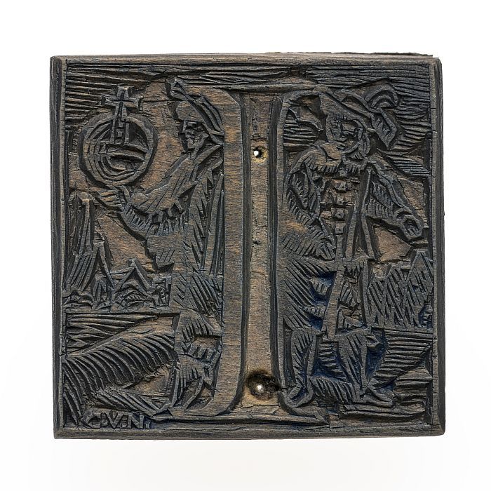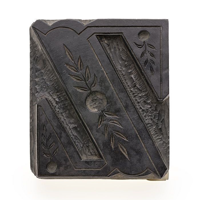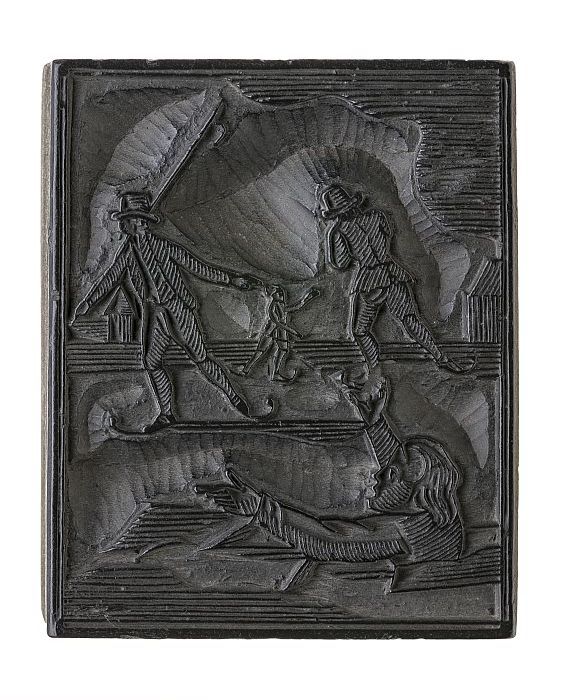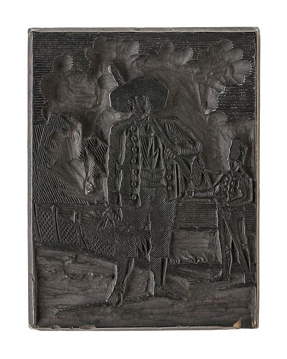 Metalen cliché op hout, van serie van 12 maanden: tw...