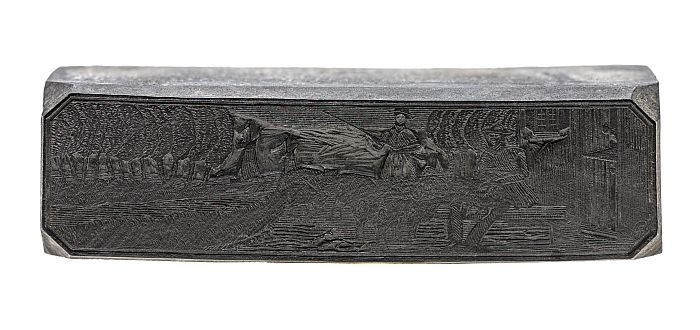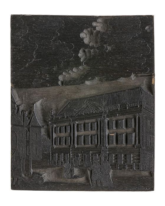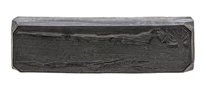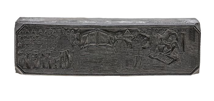 Metalen cliché op hout, van serie van 12 maanden: ee...