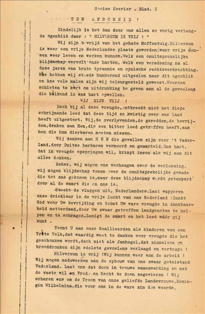 Gooise Koerier, sectie 1 , Bevrijdingsnummer