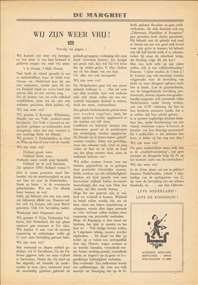De Margriet, 5 mei 1945 Bevrijdingsnummer.