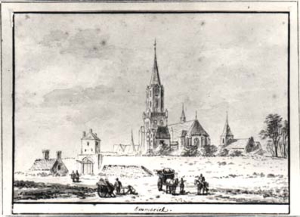 Gravure "Gezicht op Emmerik" op papier door Abraham ...