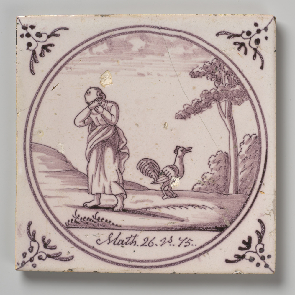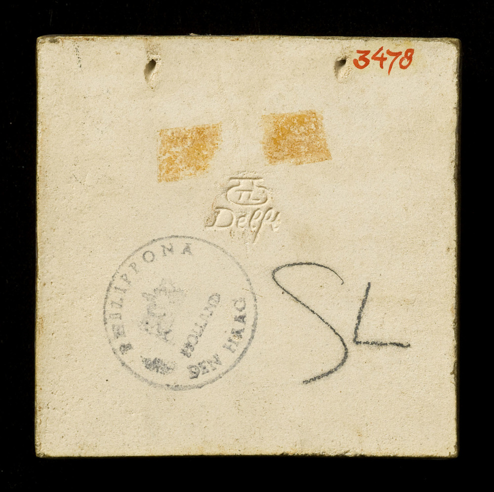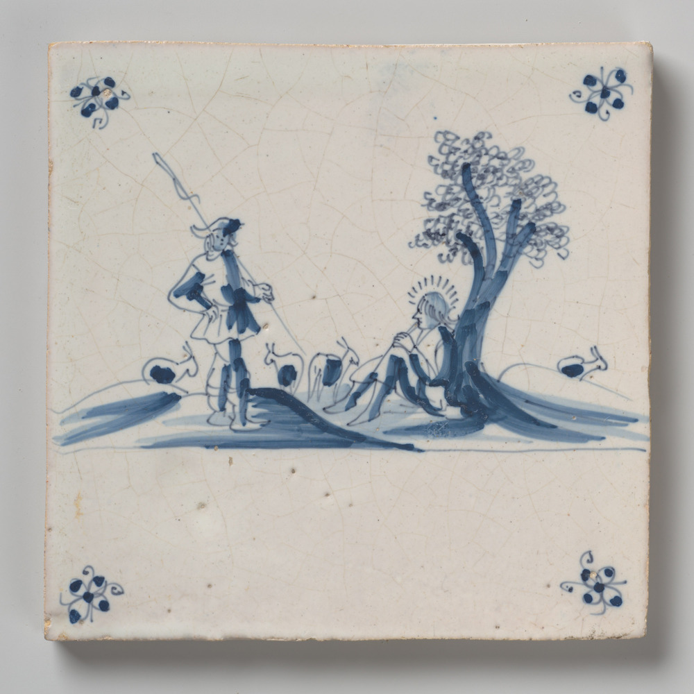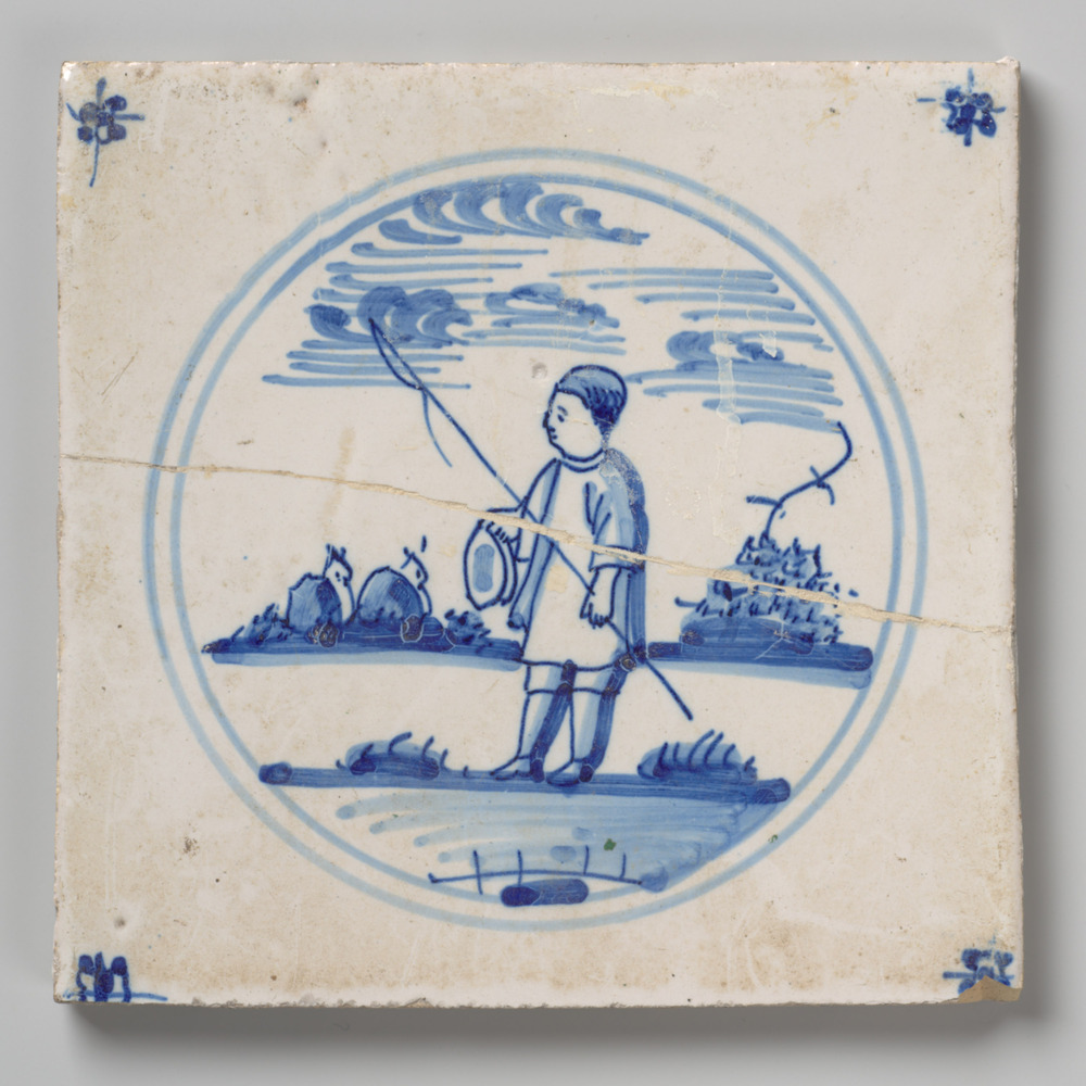 tegel van aardewerk met tinglazuur, voorstellende: s...