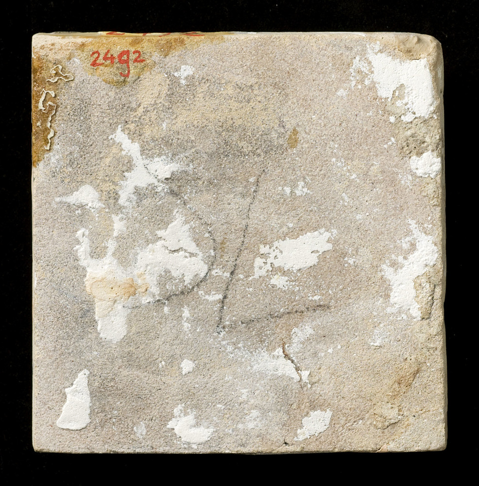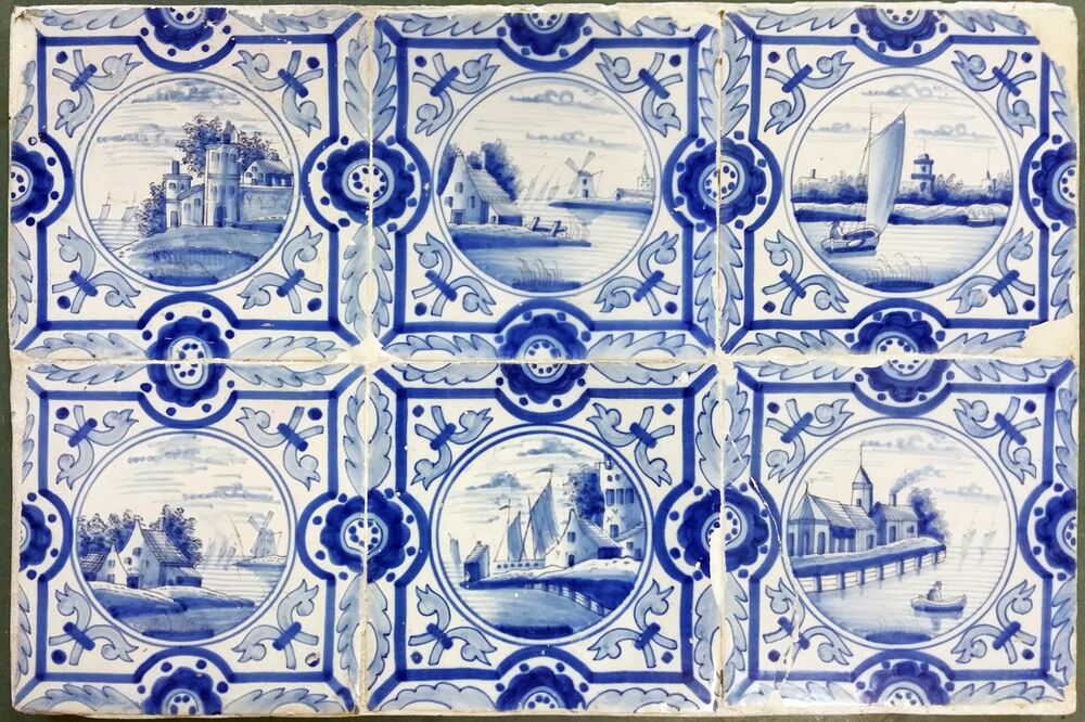 Tegel van keramiek met tinglazuur, voorstellende: wa...