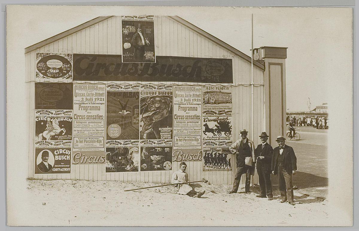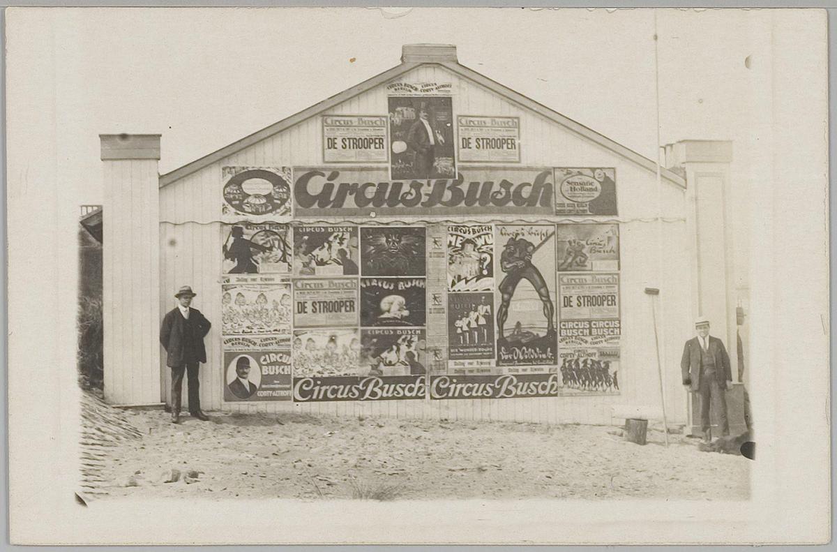 Gebouw met Affiches van Circus Busch; o.a. Frans Bur...