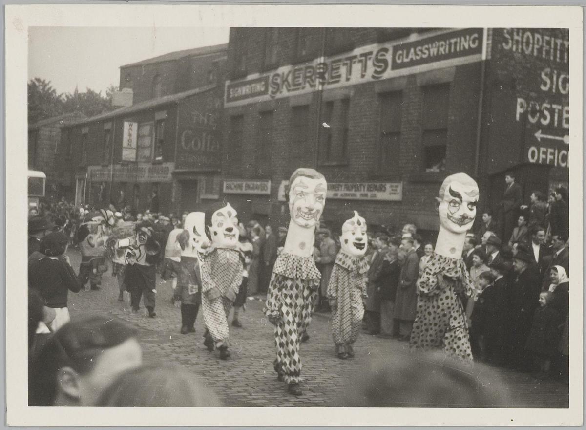 Intocht Circus Chipperfield, clowns. Ong. 1953