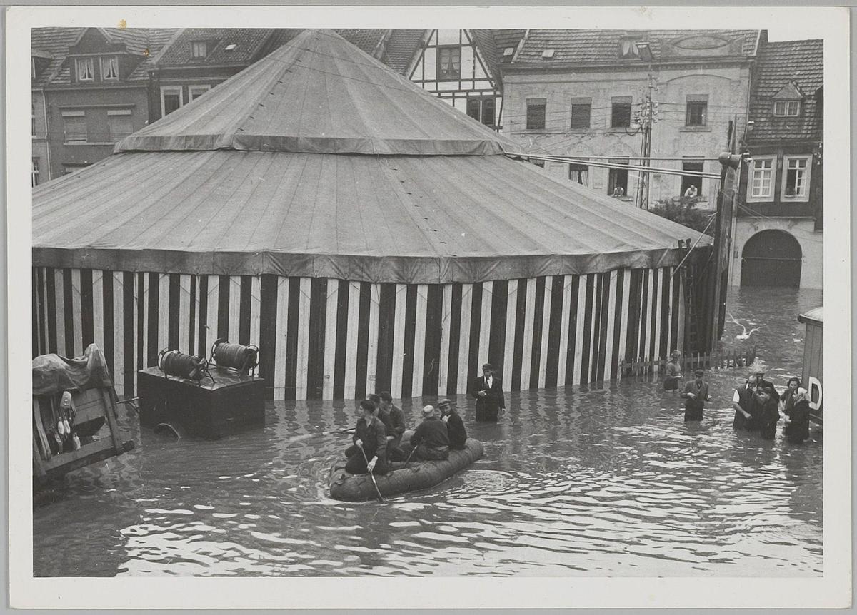 Circus G. Demuynck. Eupen, Juni 1952. Overstroming