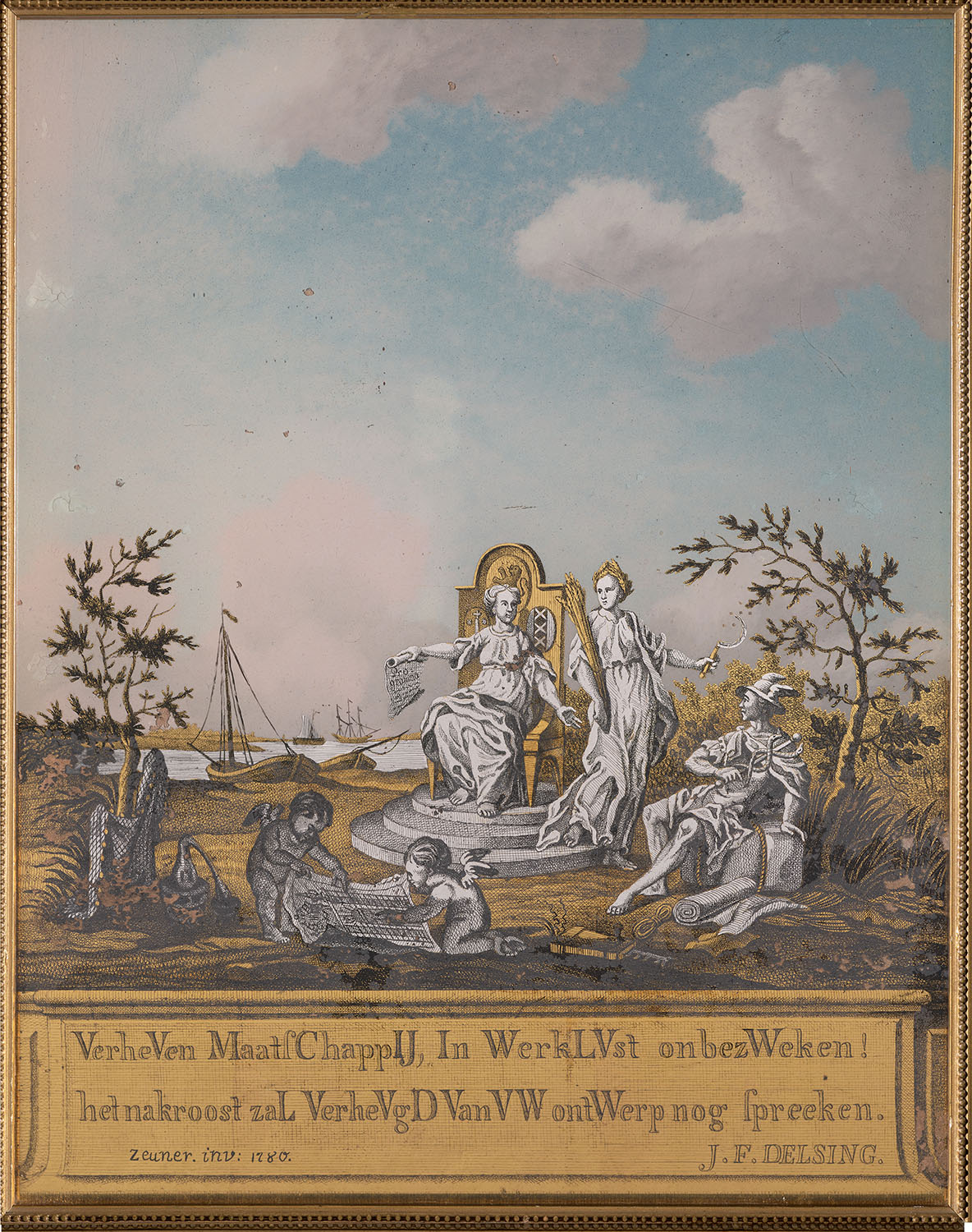 Allegorische voorstelling op de Maatschappij van Wet...
