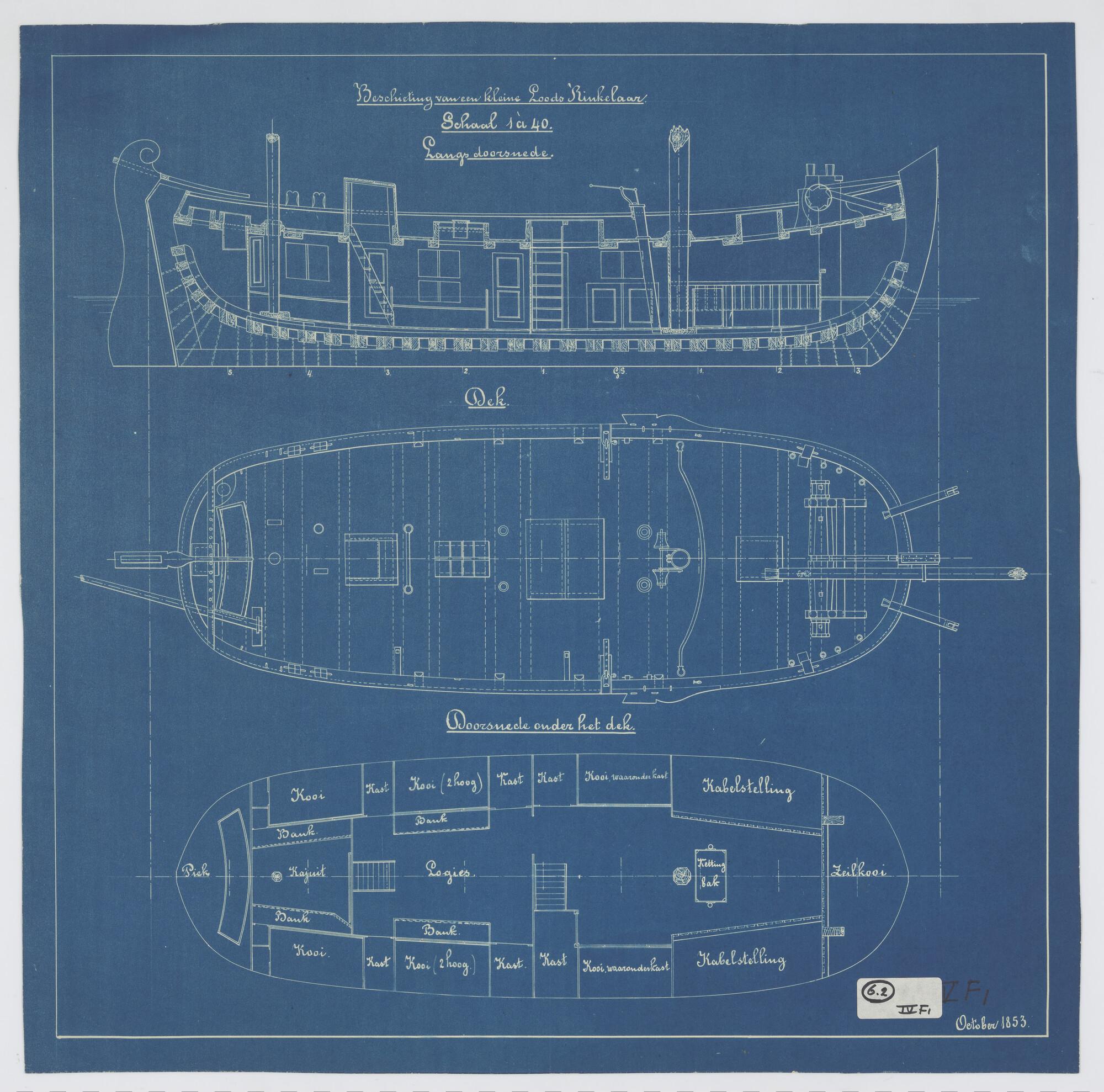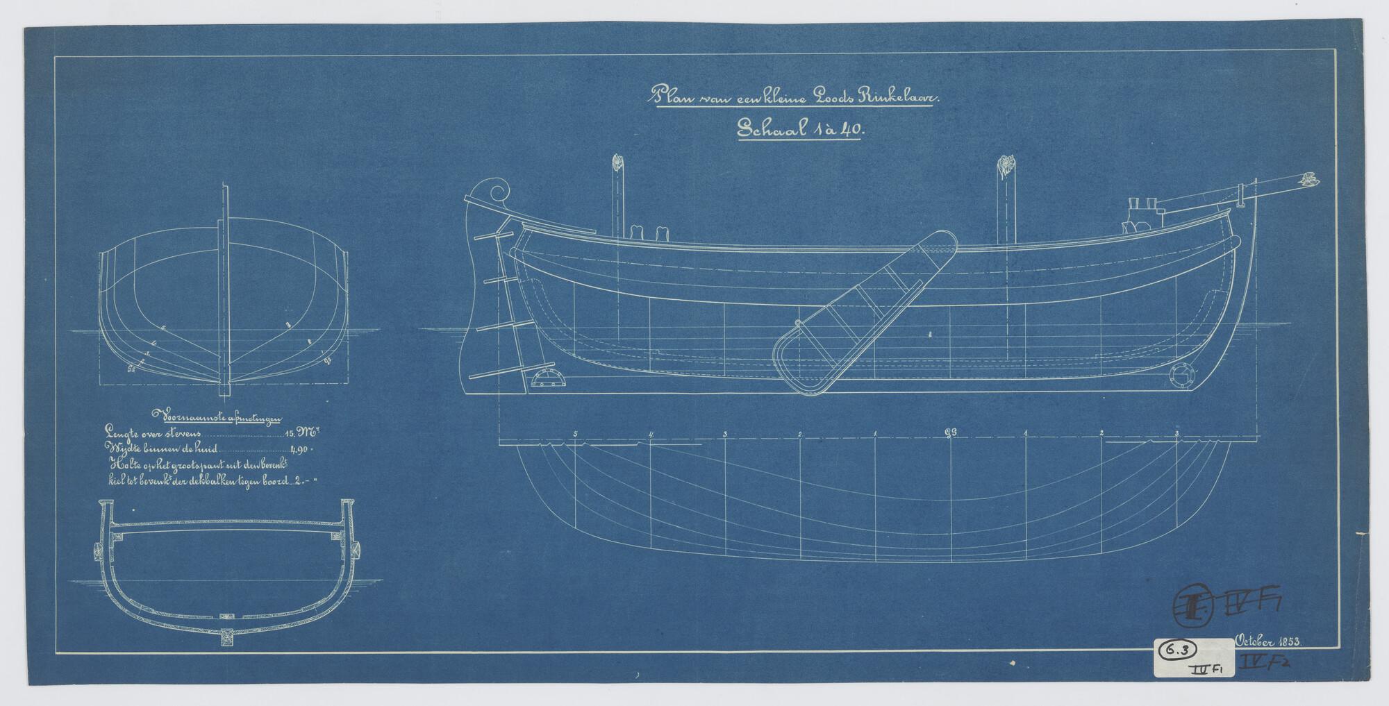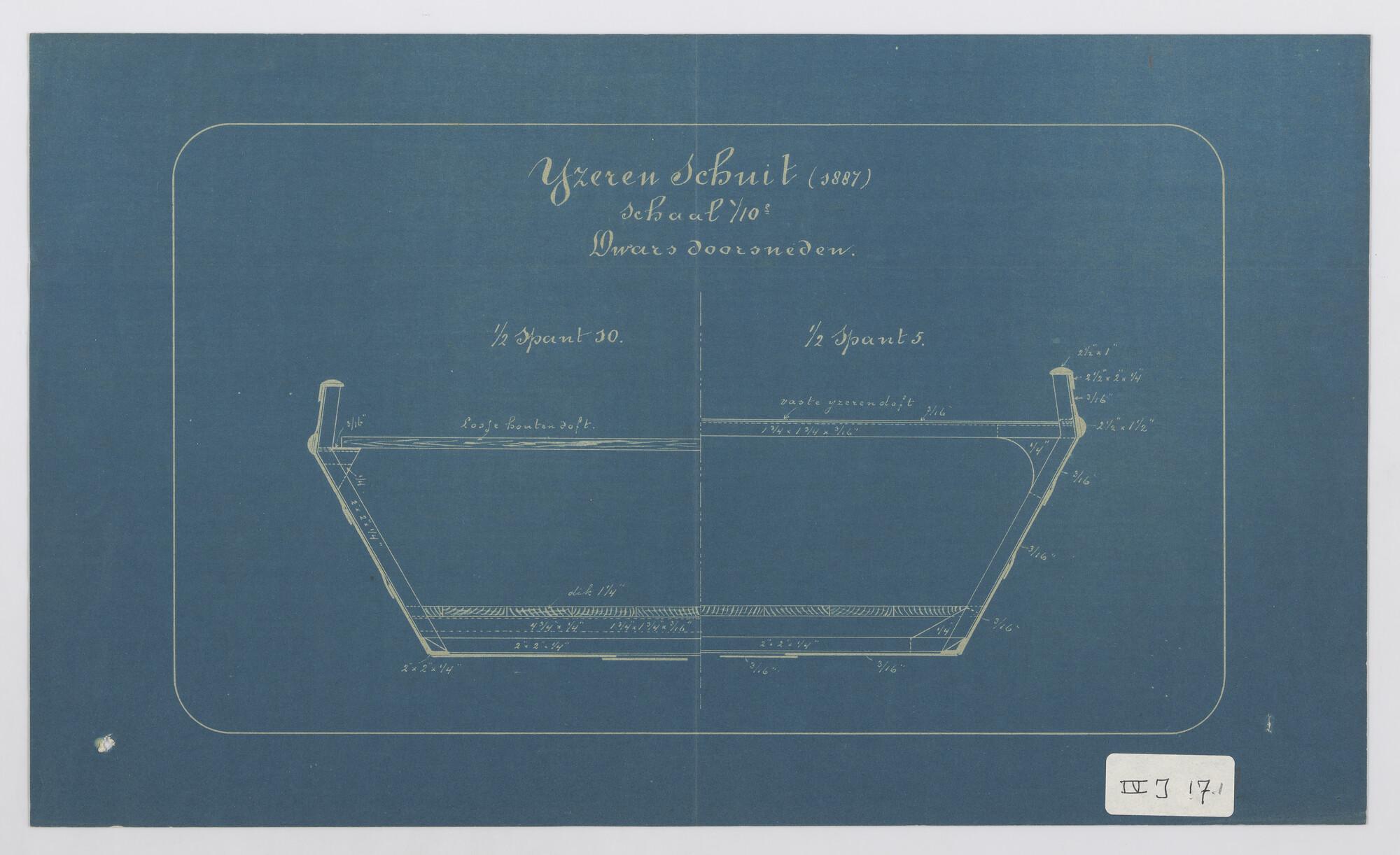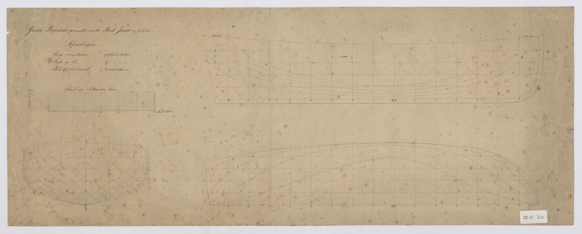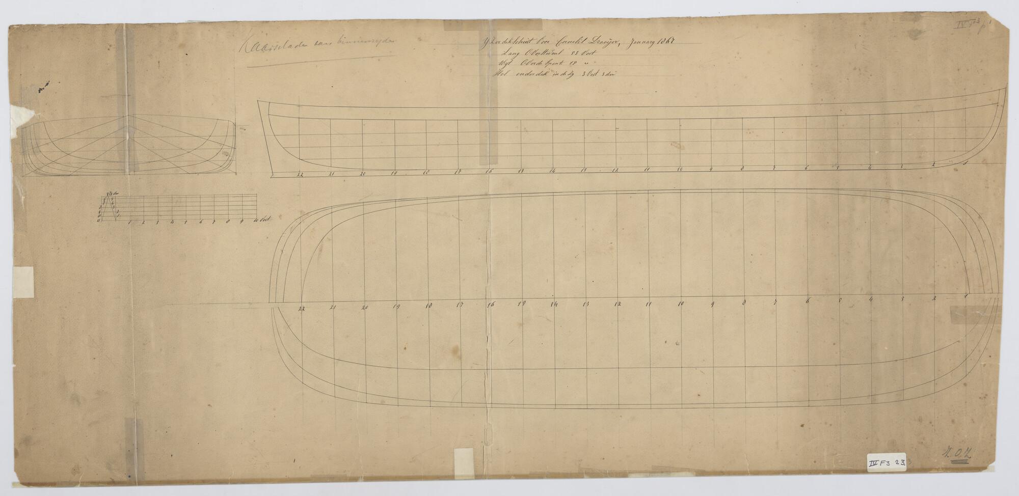 Lijnenplan, IJzeren dekschuit 1867 53 x 18 x 3 voet