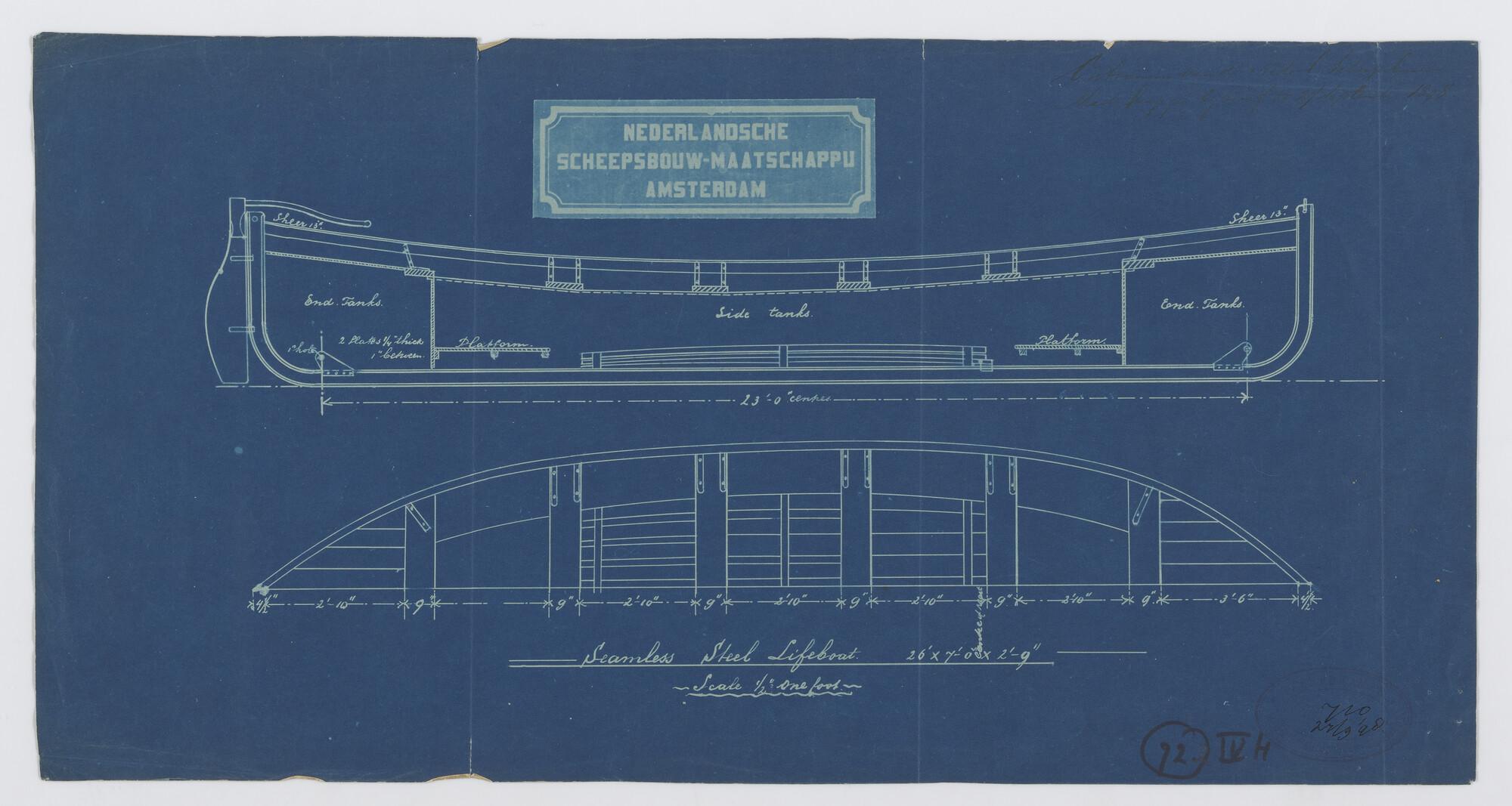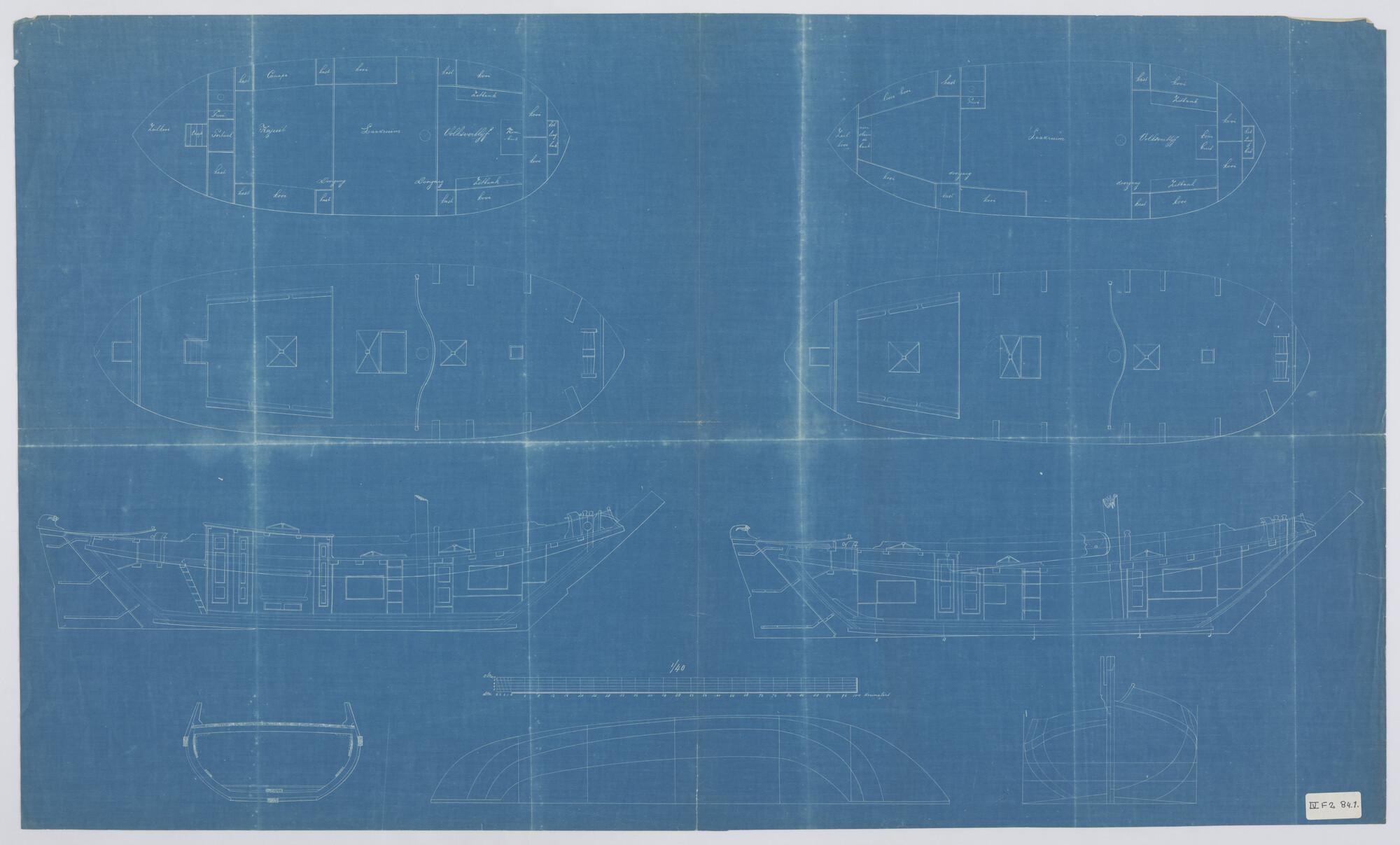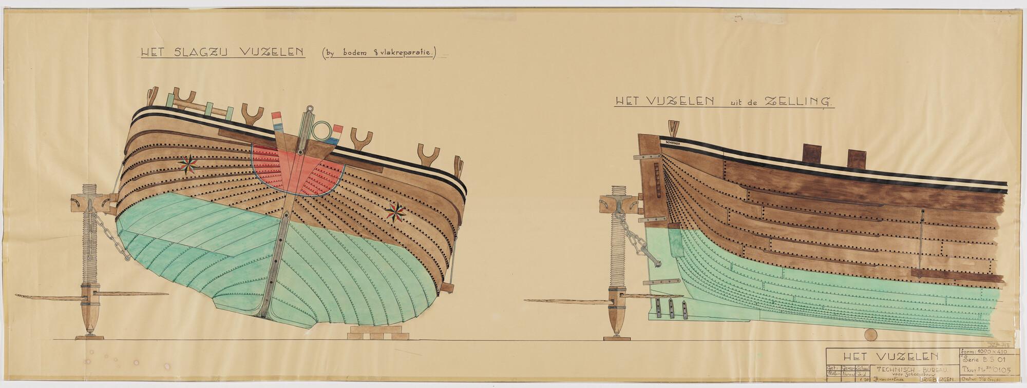 Verticale langsdoorsnede, zijaanzicht, waterlijnen, ...