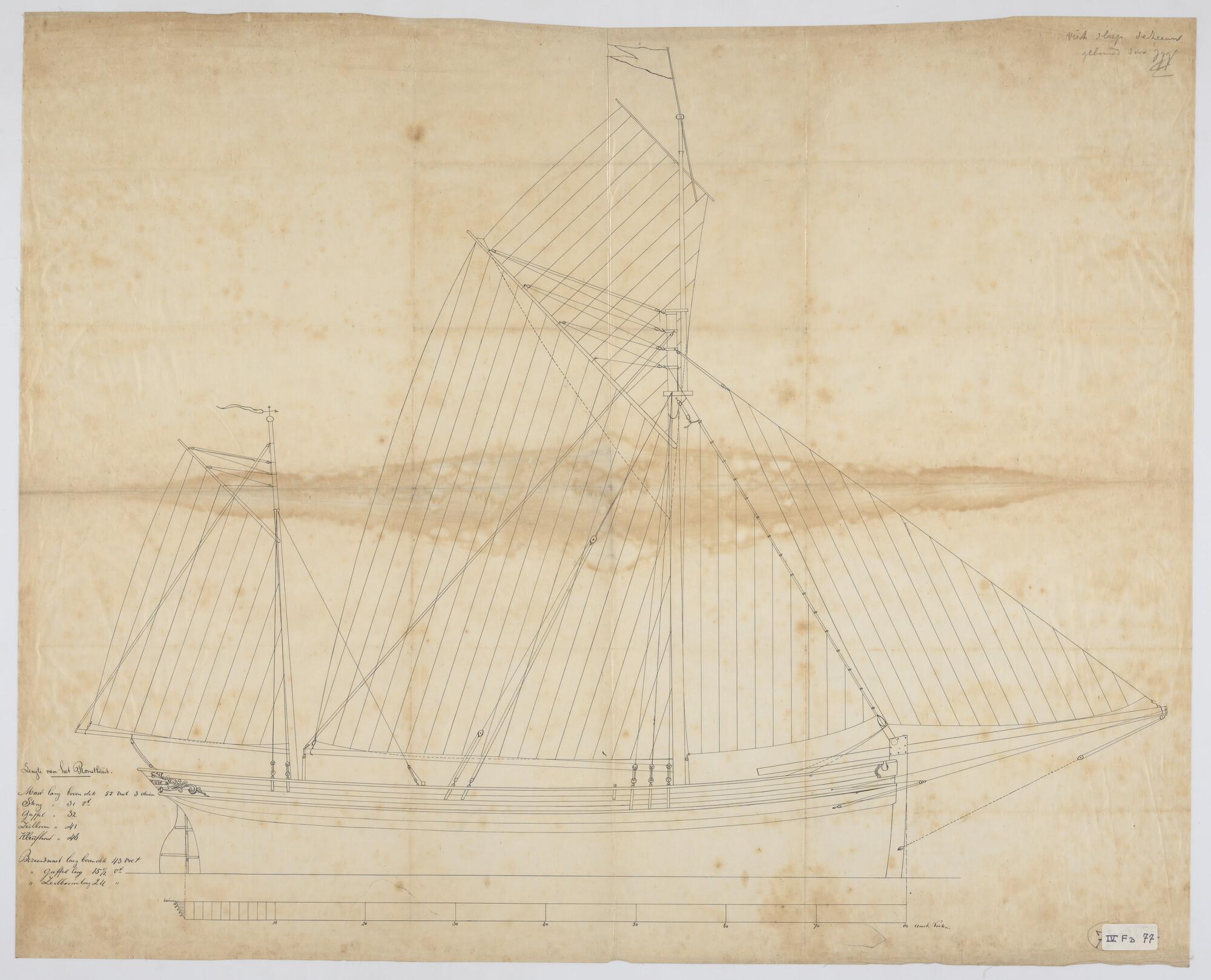 Lijnenplan van een tjalk 1862 Lang 73.3 voet