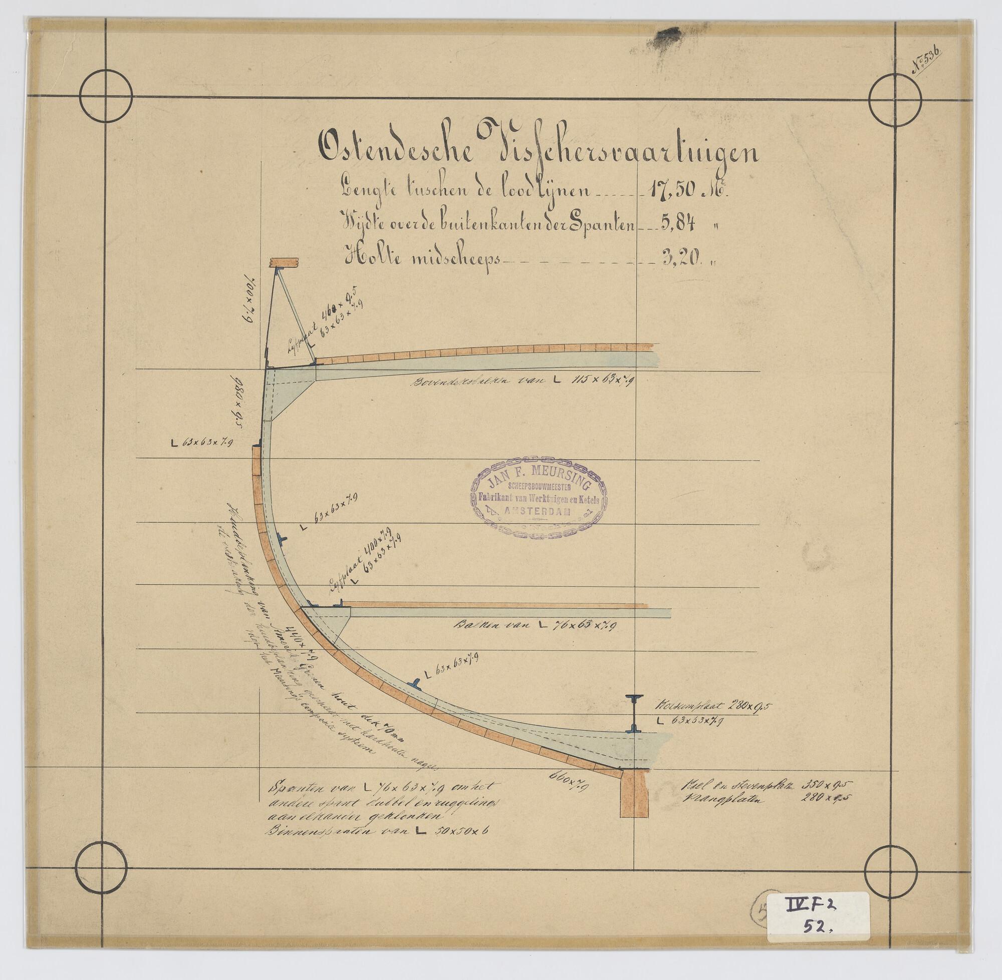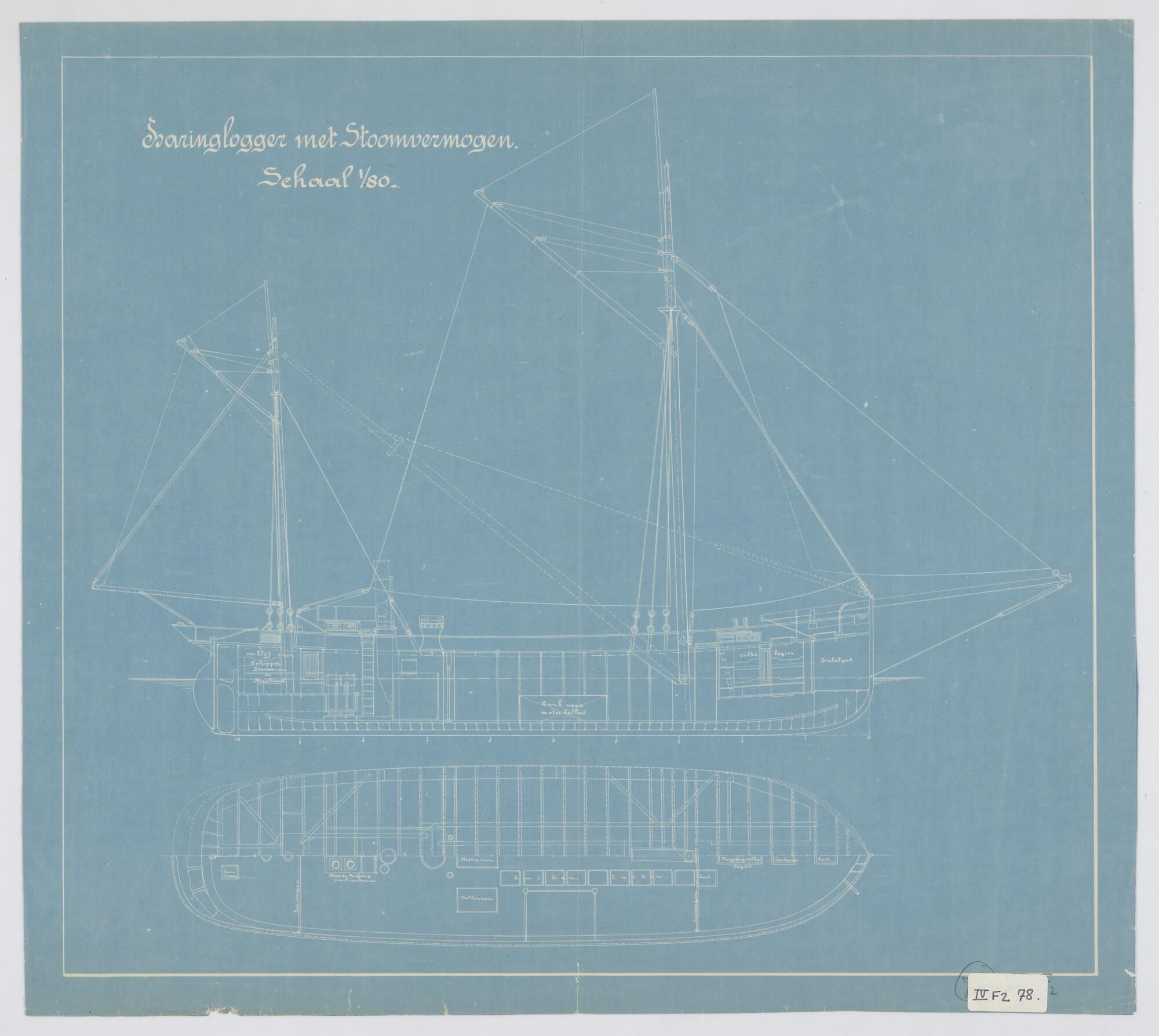 Verticale langsdoorsnede, bovenaanzicht, spantenraam...