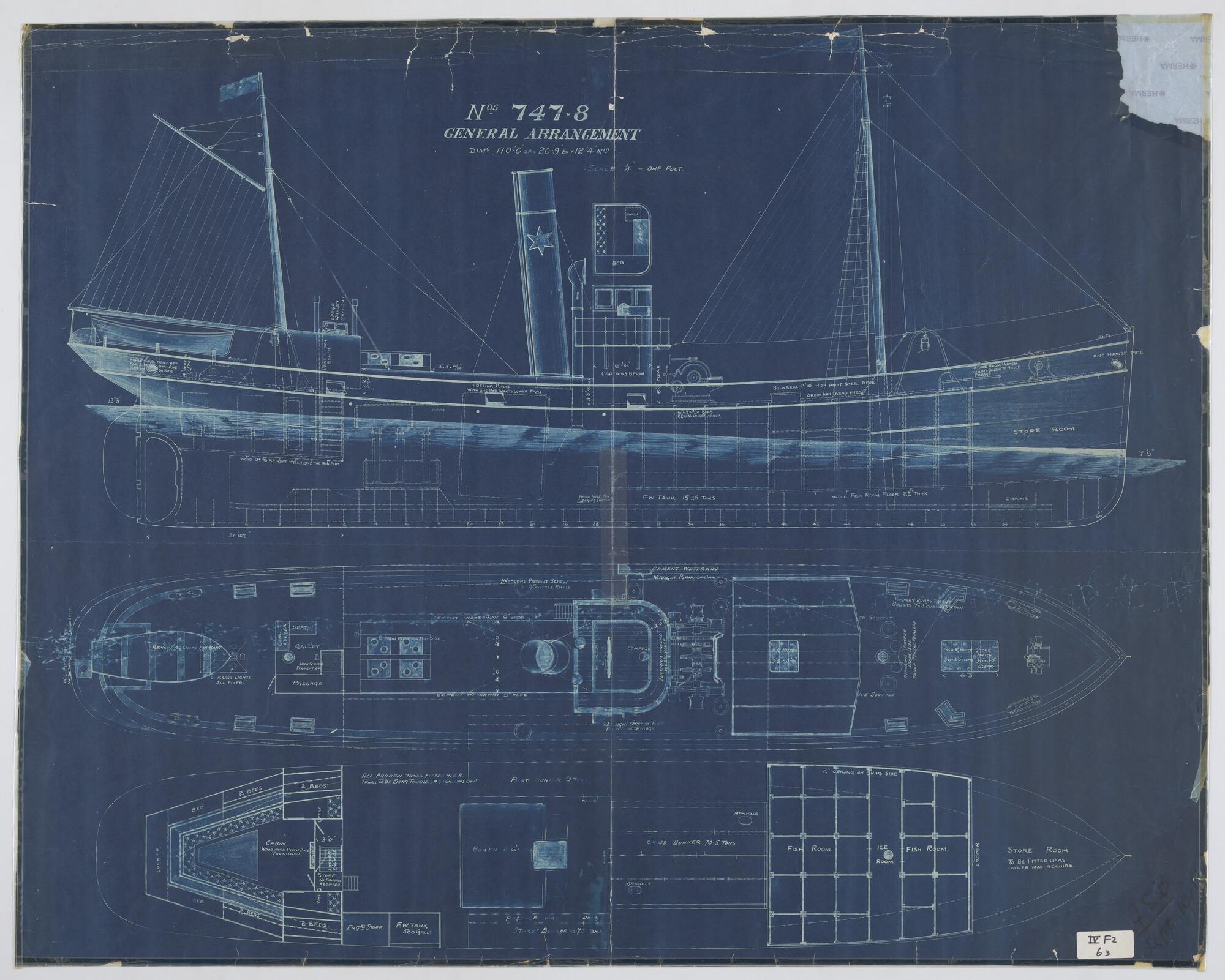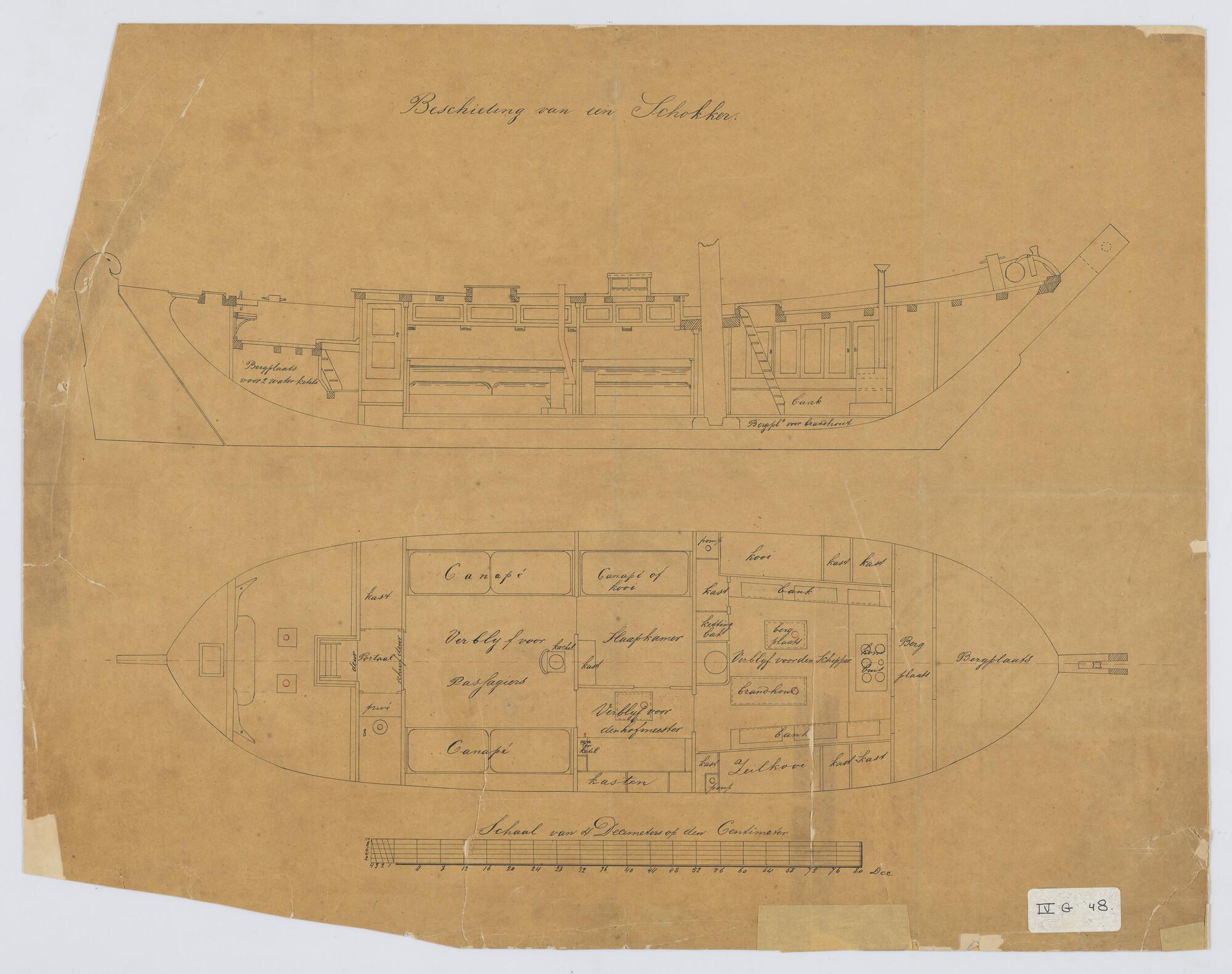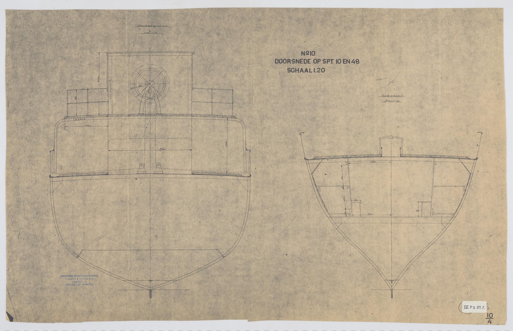 Dwarsdoorsnede op spant 10 en 48 van de stoomlogger ...