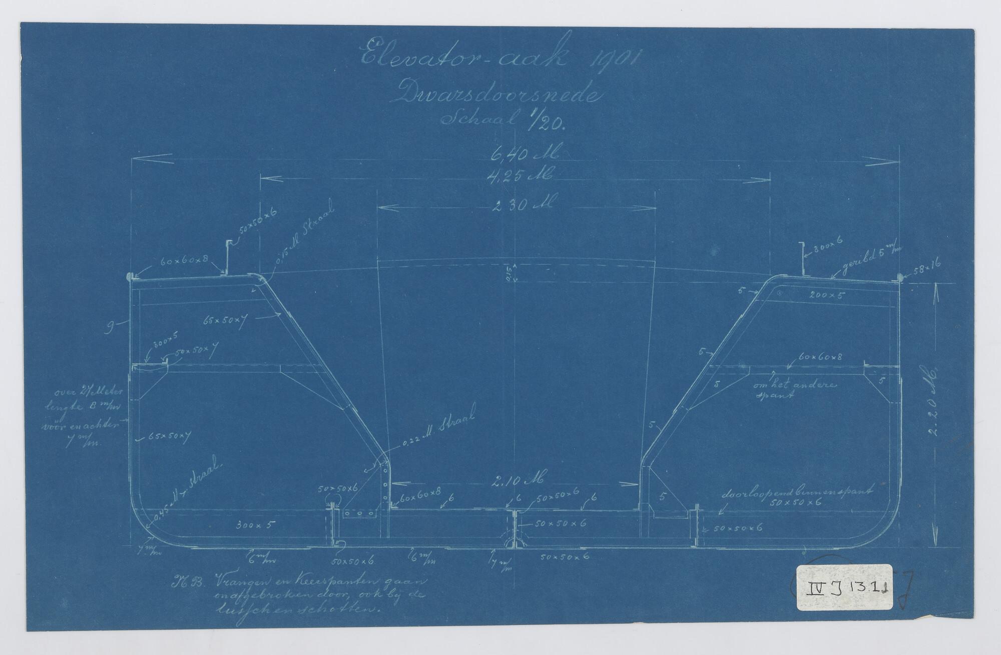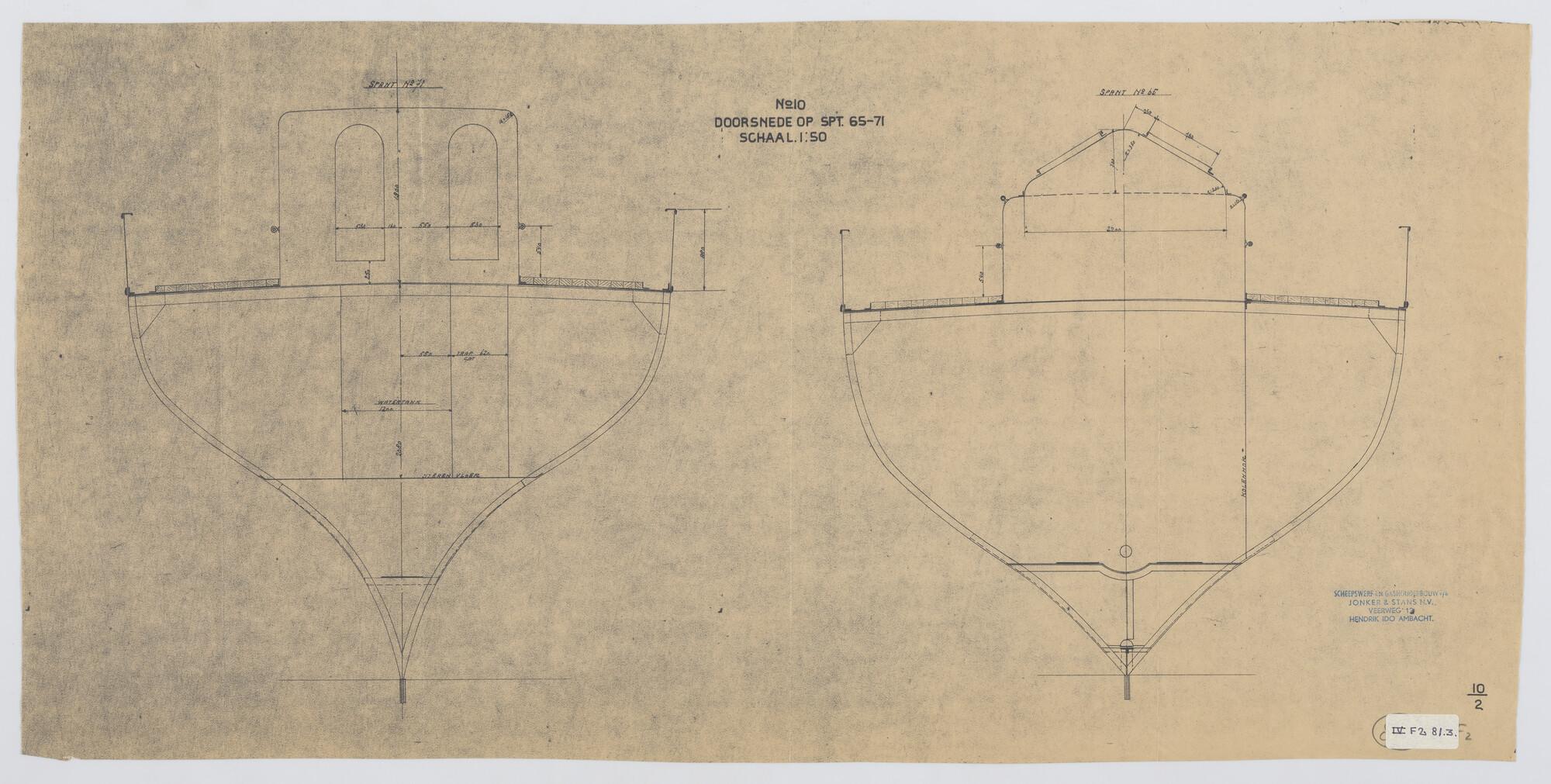 Dwarsdoorsnede op spant 65 en 71 van de stoomlogger ...