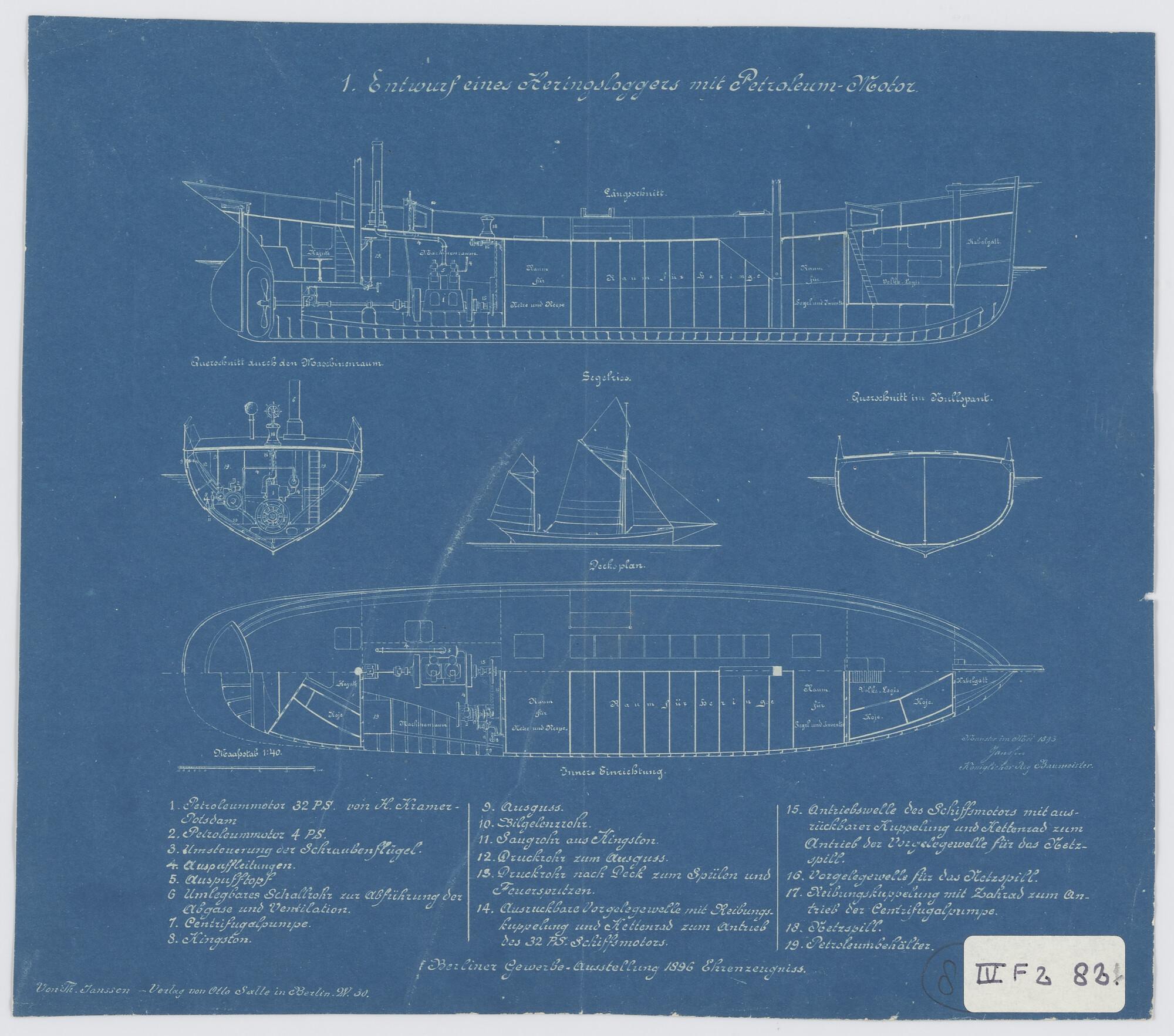 Ontwerpen Duitse motorharinglogger, 1896