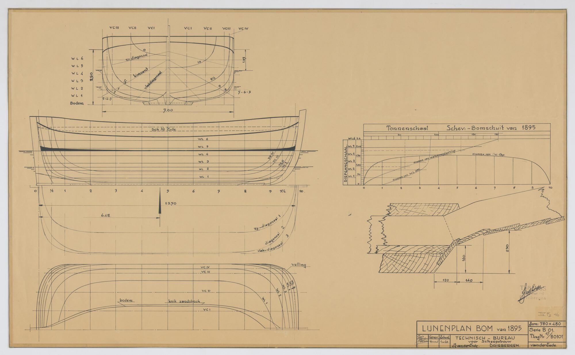 Lijnenplan, waterlijnen, spantenraam, verticale lang...