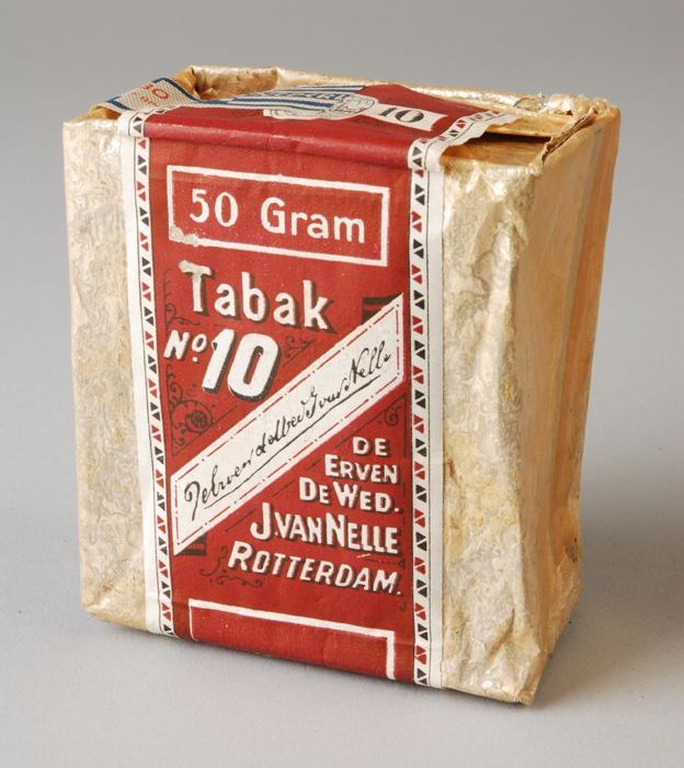 Leeg pak VAN NELLE TABAK No.10, met rood label, 50 gram