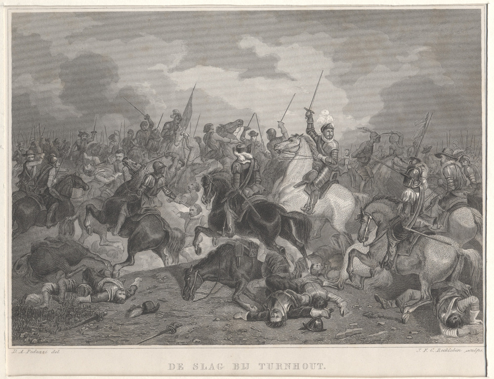 Gezicht op de slag bij Turnhout in een melee van rui...