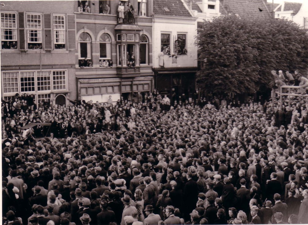 Bevrijding voor het stadshuis,met massale belangstel...