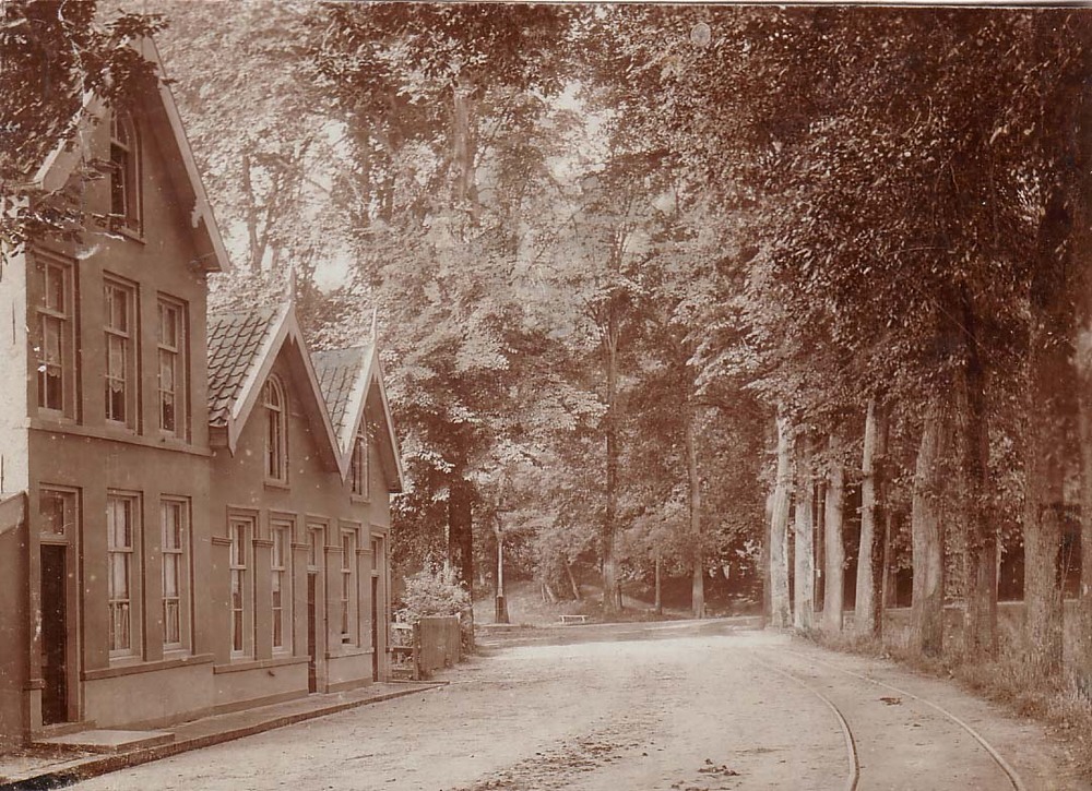 Huizen aan de stationsweg, met tramrails van paarden...