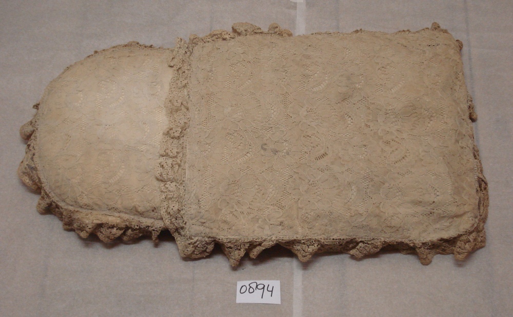 baby draagkussen van katoen met kant 1875-1900