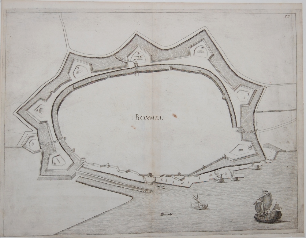 Plattegrond van Zaltbommel met de vestingwerken