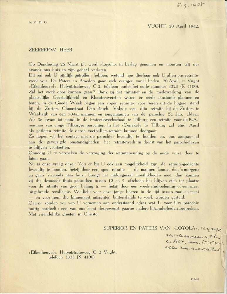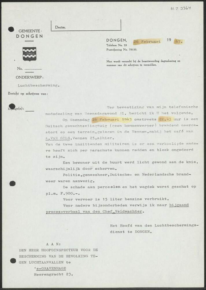 Brief Gemeente Dongen 26 februari 1943.