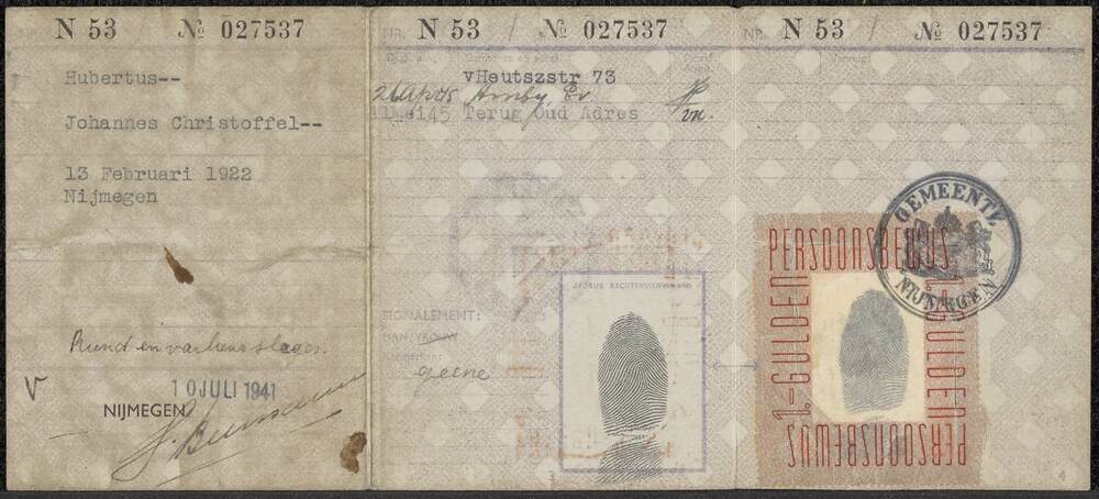 Persoonsbewijs Johannes Christoffel Hubertus