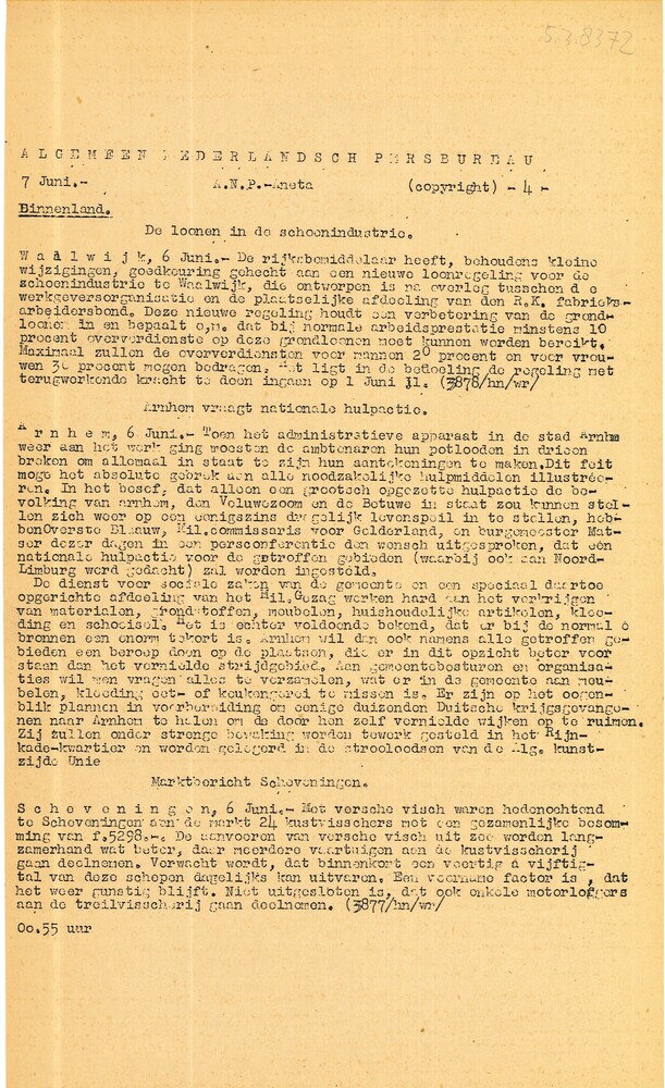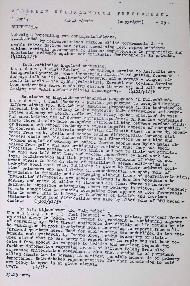 Algemeen Nederlandsch Persbureau, mededelingen, 1 ju...