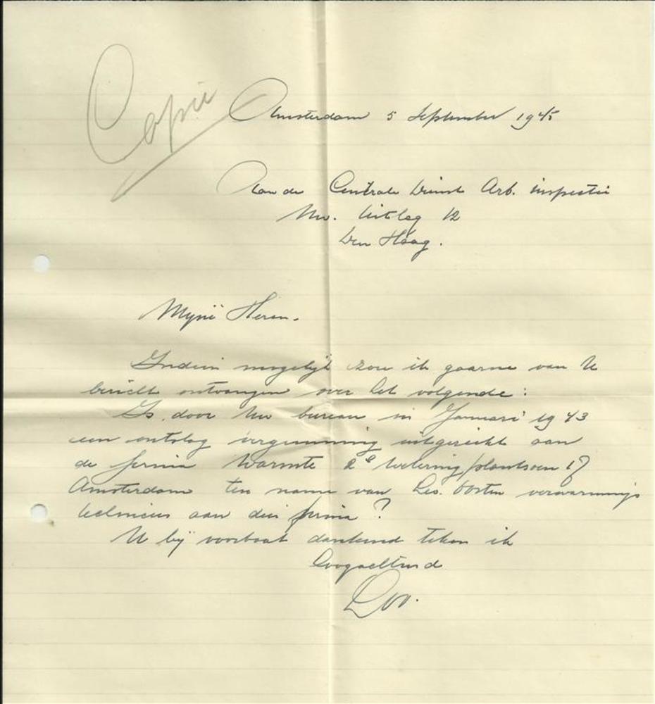 Van dhr Oosten aan de Centrale Dienst Arbeidsinspect...