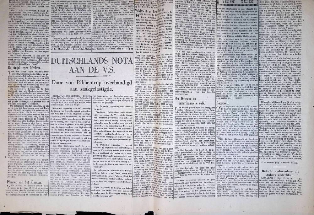 De Courant, Het Nieuws van den Dag, 12 december 1941