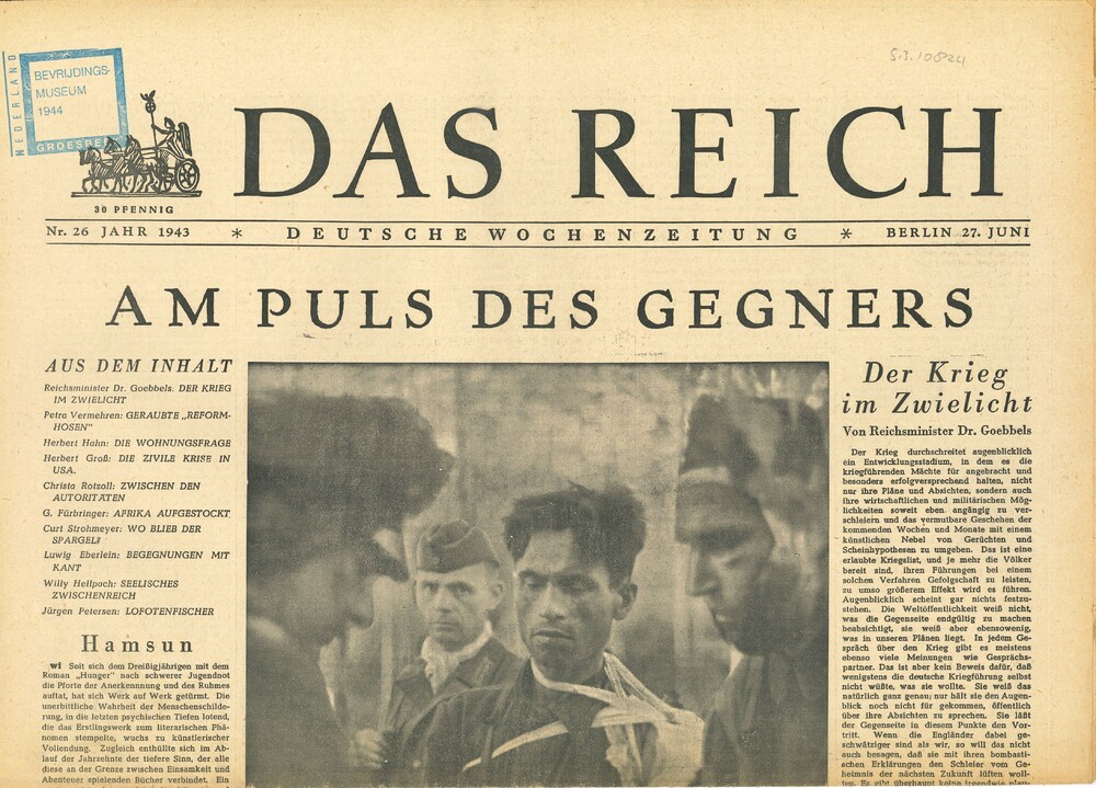 Das Reich, Deutsche Wochenzeitung, Jahr 1943, nr 26,...