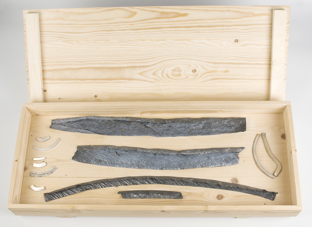 objecten van lood in houten kist