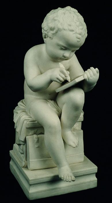 Wit biscuit beeld van tekenend kind, zittend op sokk...